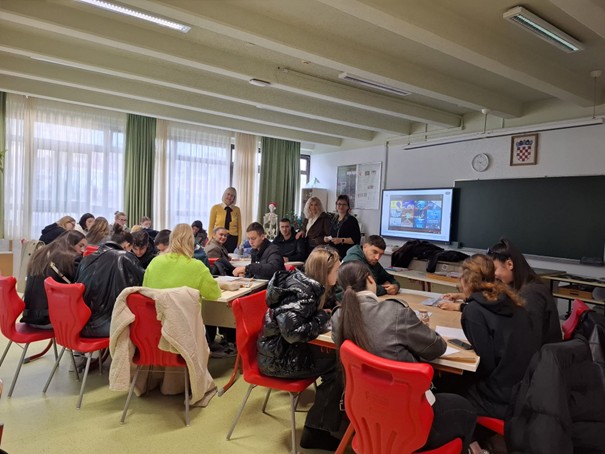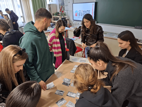 Kroz praktični timski rad i korištenje alata Klimatska freska, sudionici su analizirali probleme održivog razvoja i klimatskih promjena te prezentirali rezultate putem jumbo plakata.