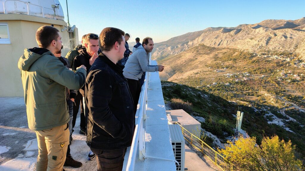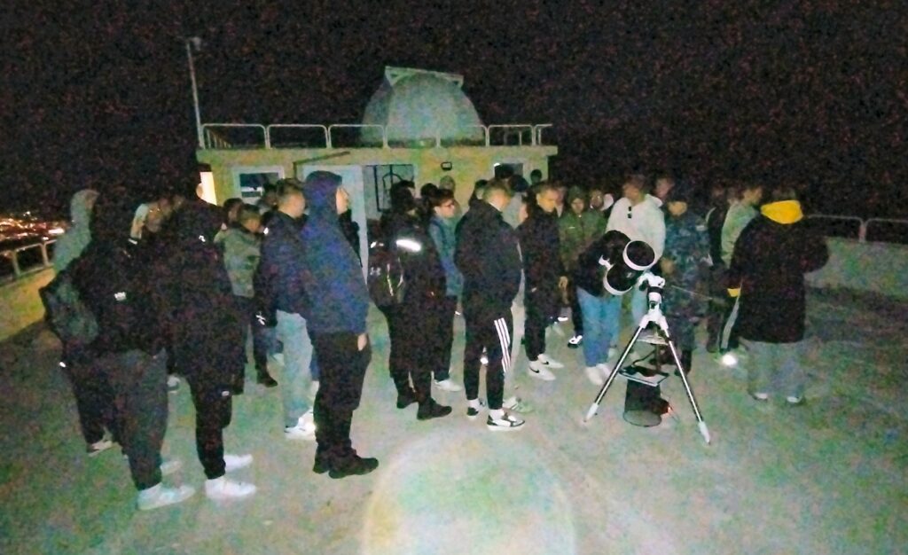 Dana 5. studenog, u popodnevnim satima, u posjet zvjezdarnici udruge Zvjezdano selo Mosor u Gornjem Sitnom su zajedno stigle dvije skupine studenata pomorstva. U jednoj od njih je bilo 45 polaznika V semestra prijediplomskog studija Pomorske nautike Pomorskog fakulteta u Splitu, dok su u drugoj bila četiri kadeta četvrte godine združenog sveučilišnog integriranog prijediplomskog i diplomskog studija Vojno pomorstvo: smjer Vojna nautika. Studente su vodili njihovi profesori dr. sc. Zvonimir Lušić i Stipe Galić, odnosno kapetan korvete doc. dr. sc. Tomislav Sunko. Za obje skupine je taj posjet bio dio praktične nastave iz kolegija Astronomska navigacija.